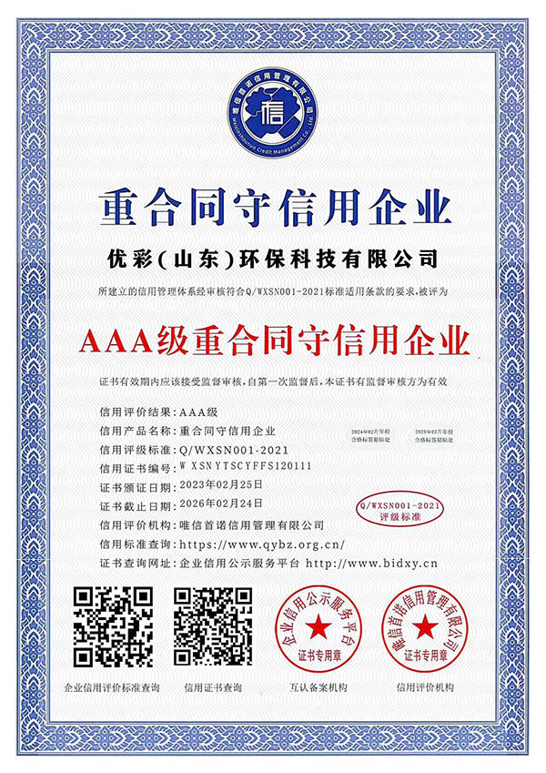 AAA级质量服务诚信单位